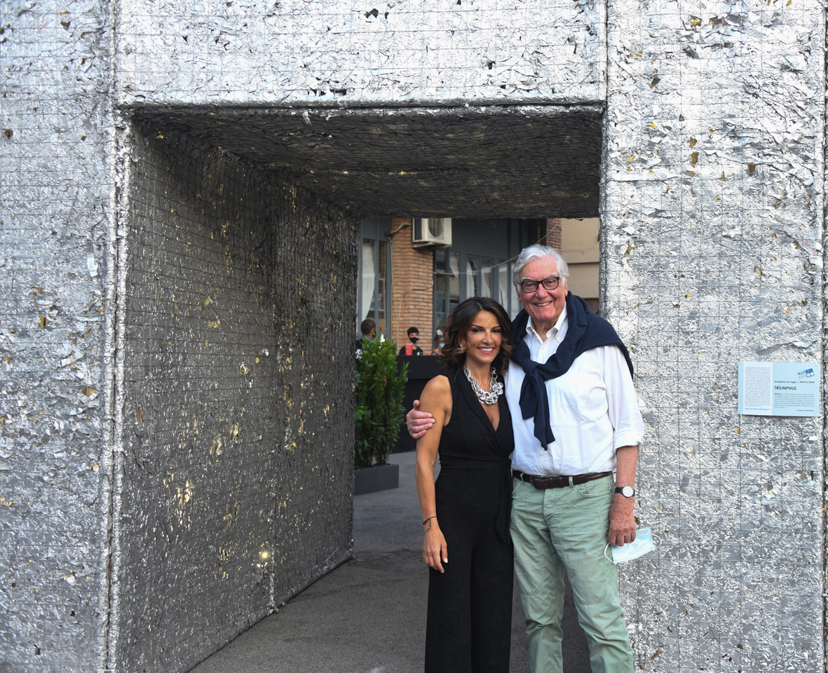 Il primo evento cinematografico post Covid è stato a tema ‘rinascita’ e l’arena è stata allestita con 2 delle 4 opere d’arte in alluminio riciclato di Annalaura di Luggo artista e protagonista del film.