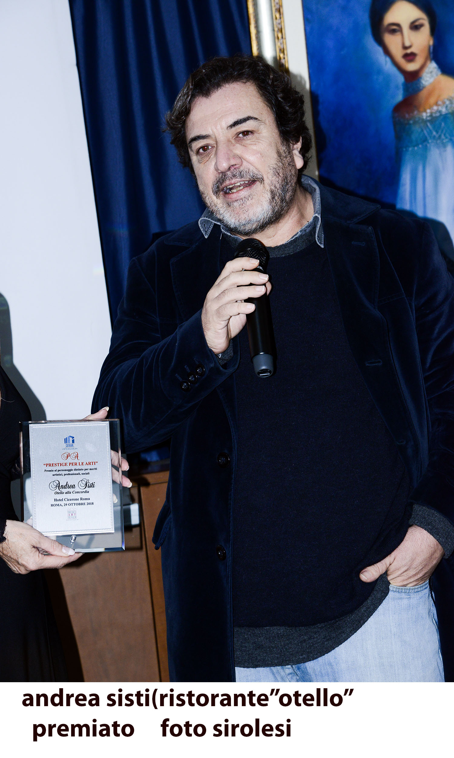 Il Prestige per le Arti gli viene assegnato per il docufilm “Il segreto di Otello”, dedicato al ristorante aperto dal nonno 70 anni fa e da subito buen retiro del cinema italiano, presentato dapprima alla Berlinale e poi premiato con un Nastro d’Argento. Nel docufilm compaiono in due camei Robert de Niro e Bruce Springsteen che canta e suona dal vivo proprio nelle sale di “Otello”. La serata ha anche segnato il gradito ritorno della coppia Franco Franchi e Ciccio Ingrassia. Infatti il premio Cinema è andato agli attori sosia dei due grandi comici, Tony Biffi e Marco Flamini, scoperti dal regista Felice Corticcha (premiato anche lui), che si sono esibiti in vari sketch. Li vedremo presto sul grande schermo?