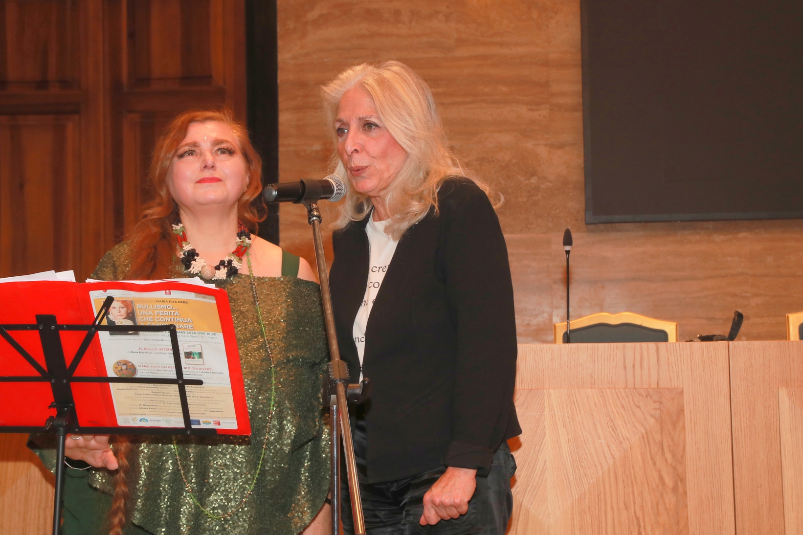 L’attrice e produttrice Ida Di Benedetto e l’attore Claudio Germanò hanno letto alcuni brani del libro. Ma il momento più applaudito è stato senza dubbio quando la “padrona di casa” Sara Pastore ha presentato in anteprima assoluta il videoclip della sua ultima intensa canzone contro il bullismo, “Siamo tutti dei petali… anche se di fiori diversi”, cui ha partecipato Andrea Roncato con un coro di bambini; brano molto apprezzato e sostenuto moralmente dalla Parsi che avrebbe voluto sentirlo cantato sul palco di Sanremo.