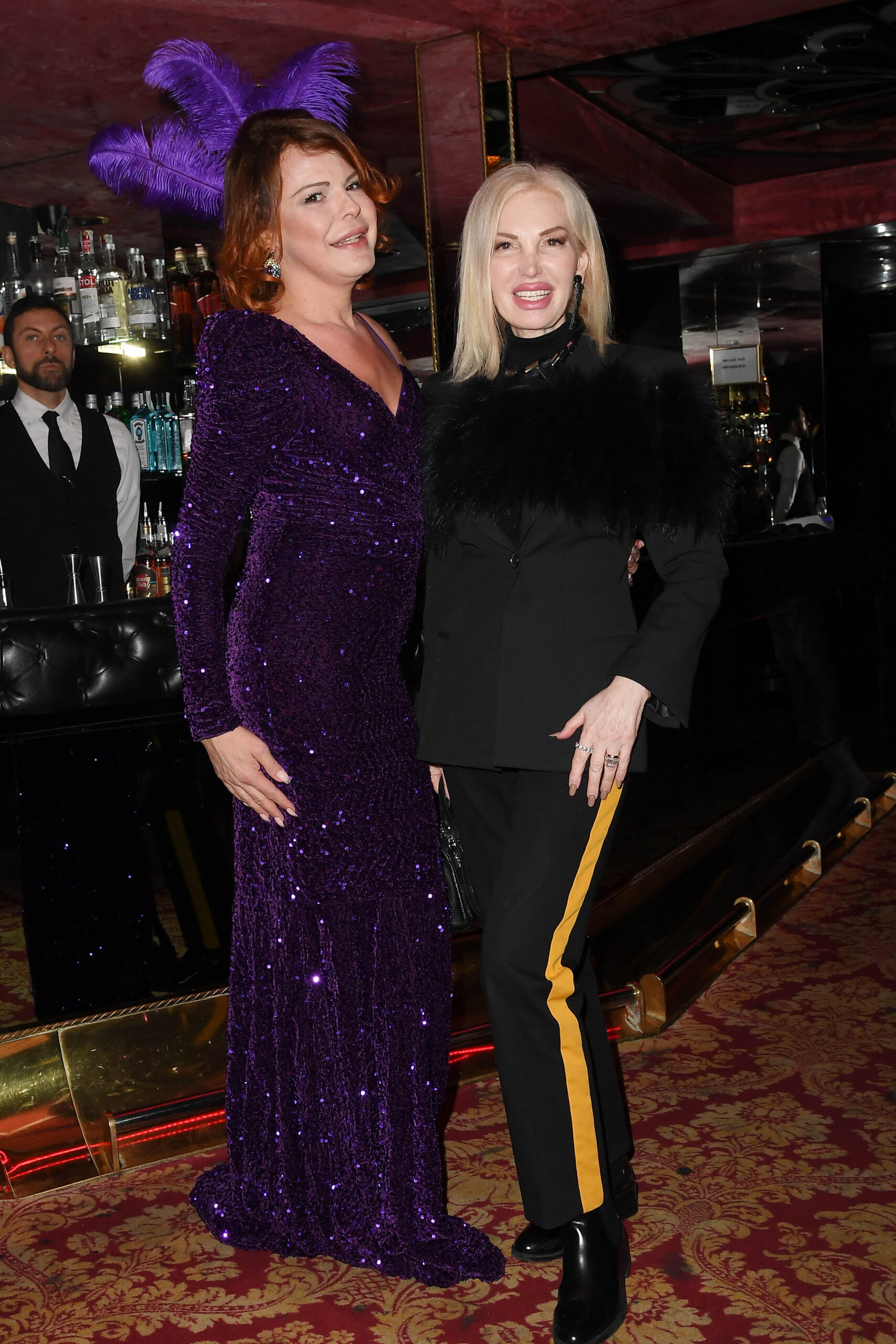 Come sempre si è cambiata due volte l’outfit: prima un paillettato vestito con strascico viola e piume in tinta tra i capelli, poi un mini mini dress con corpetto strizzato nero, come quello della Kidman, con cui ha spento le candeline su due torte insieme a due damigelle in lungo arancio di paillettes.