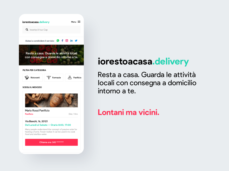 In poche ore è stato sviluppato e lanciato un sito web che potesse essere il più semplice possibile e allo stesso tempo utile. Un sito web che raccoglie e mette in evidenza le attività locali che si sono messe a disposizione con un servizio di consegna a domicilio dei beni di prima necessità per il vicinato, specialmente per le persone in difficoltà.