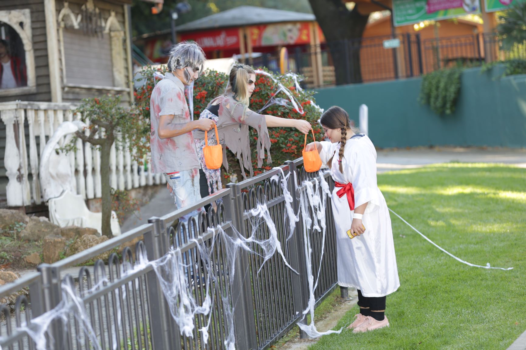 Artisti, Giocolieri, Trampolieri e Animatori nelle vesti di Streghe, Vampiri e Fantasmi cammineranno tra i Giochi e le Giostre del Parco per intrattenere i piccoli ospiti e distribuire caramelle a tutti i bambini che verranno a sfidarli con la fatidica domanda…. Dolcetto o Scherzetto??