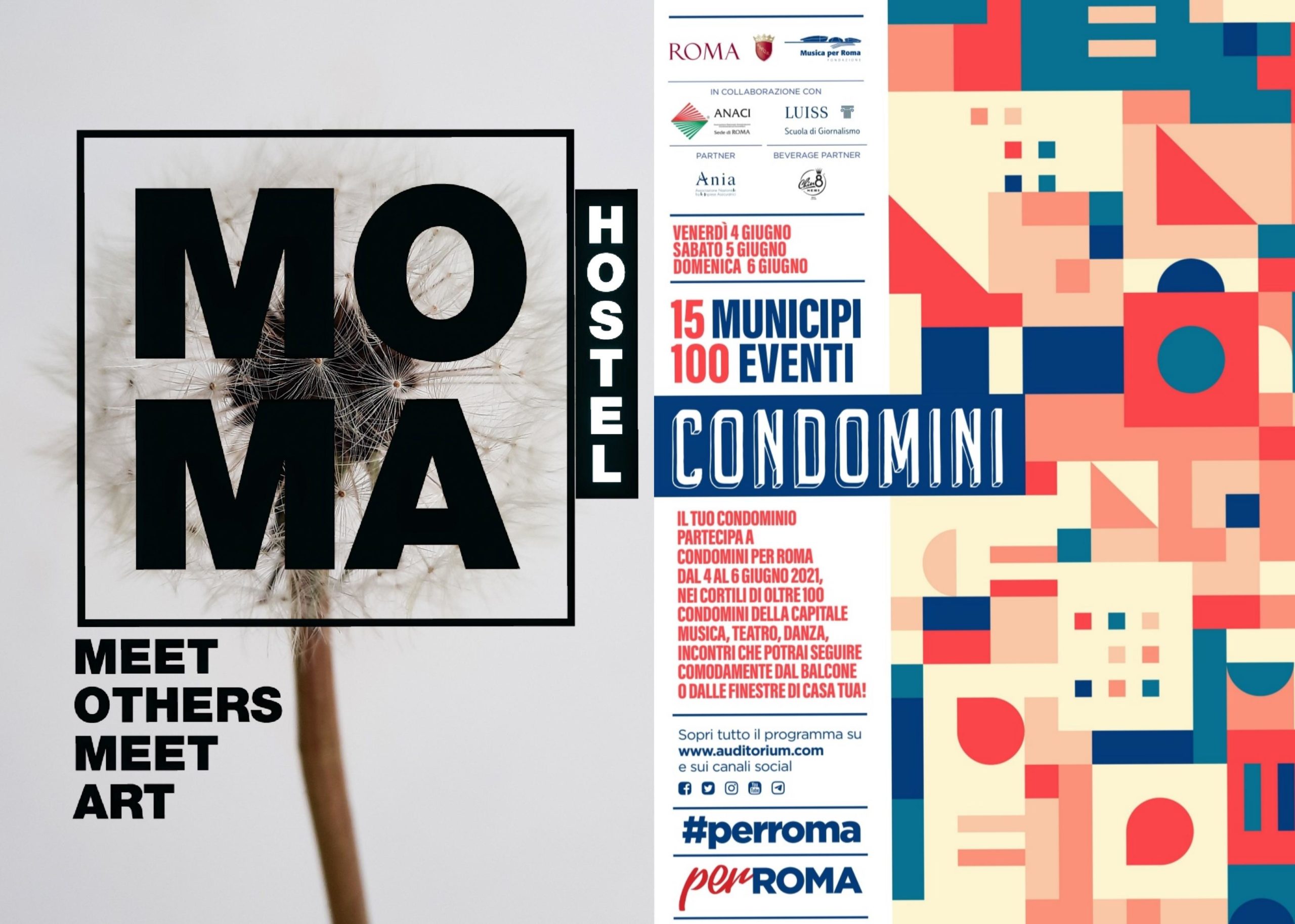 Il MOMA Hostel è stato sede di una tappa di “CONDOMINI”, un progetto di Fondazione Musica per Roma in collaborazione con il Comune di Roma che promuove l’unione di arte, musica e cinema. L’evento si è svolto contemporaneamente anche in altri cortili della capitale. Ospite speciale della serata è stato l’attore, scrittore e drammaturgo Ascanio Celestini che ha presentato un suo personale monologo, con il quale ha rapito il pubblico presente. La serata ha visto come spettatori non soltanto le centinaia di persone accolte all’interno del cortile, gli artisti e i galleristi, ma anche gli abitanti dei condomini affacciati ai balconi delle proprie abitazioni.