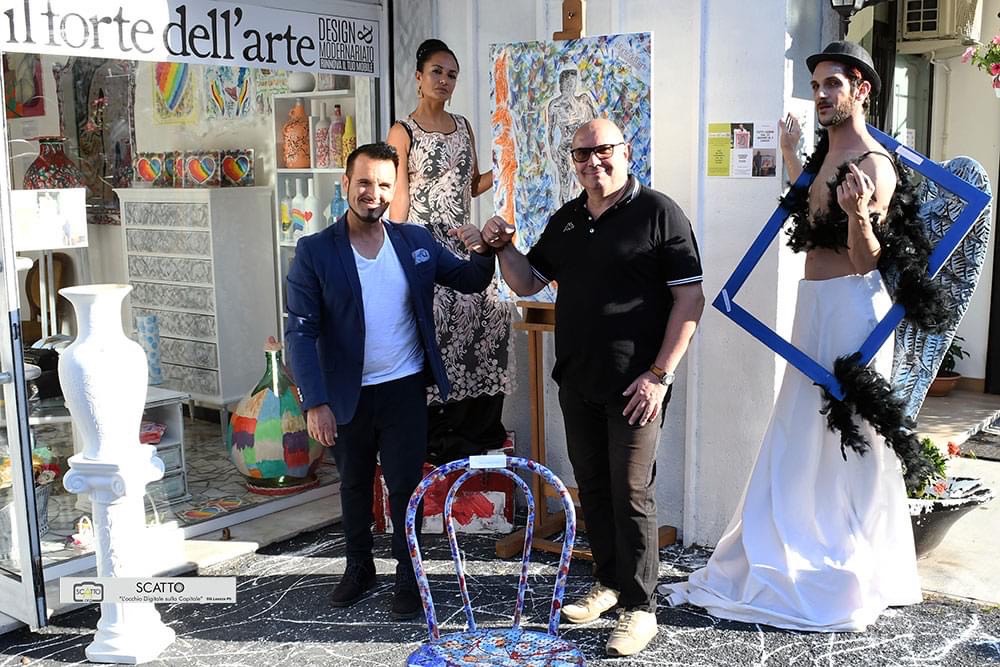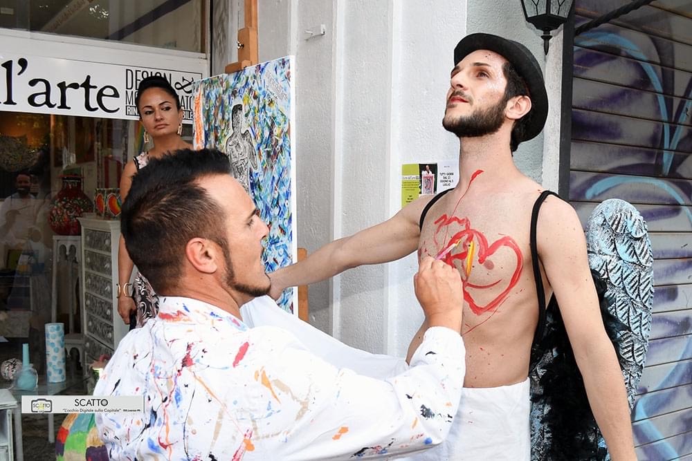 “È uno dei primi eventi di questo tipo organizzati dopo il lockdown, volevamo essere un simbolo di ripartenza”, ha spiegato Francesco Forte. Il maestro del riciclo creativo che da nuova vita a vecchi mobili con la texture si è anche divertito a realizzare del body painting sulle due installazioni viventi posizionate all’esterno dell’atelier: la modella ed indossatrice Anjali Chhbara ed il performer Marco Serra che ha indossato delle ali d’angelo anche queste realizzare dal maestro Forte.