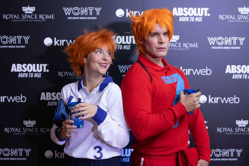 Tra attori, doppiatori, performer, comici e attivisti, ecco il mitico Lorenzo Balducci, vestito come Shiro, il suo eroe manga preferito, con tanto di parrucca arancio, scortato dall’amica Elisabetta Mandalari nei panni di Mila per riformare la coppia del cartoon “Mila e Shiro, Due cuori nella pallavolo”. Elena Di Cioccio si presenta in pigiamino rosso japan style con tanto di dragoni gialli stampati sul petto e mega ventaglio.