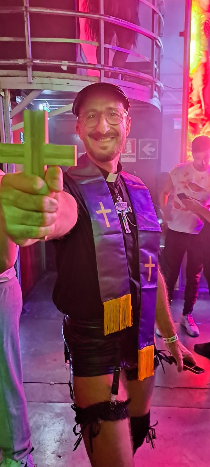 Tra drag queen e scheletri, un esercito di “preti” e “sacerdoti” si aggirava per il locale, pronti a dispensare benedizioni ironiche e sorrisi peccaminosi.