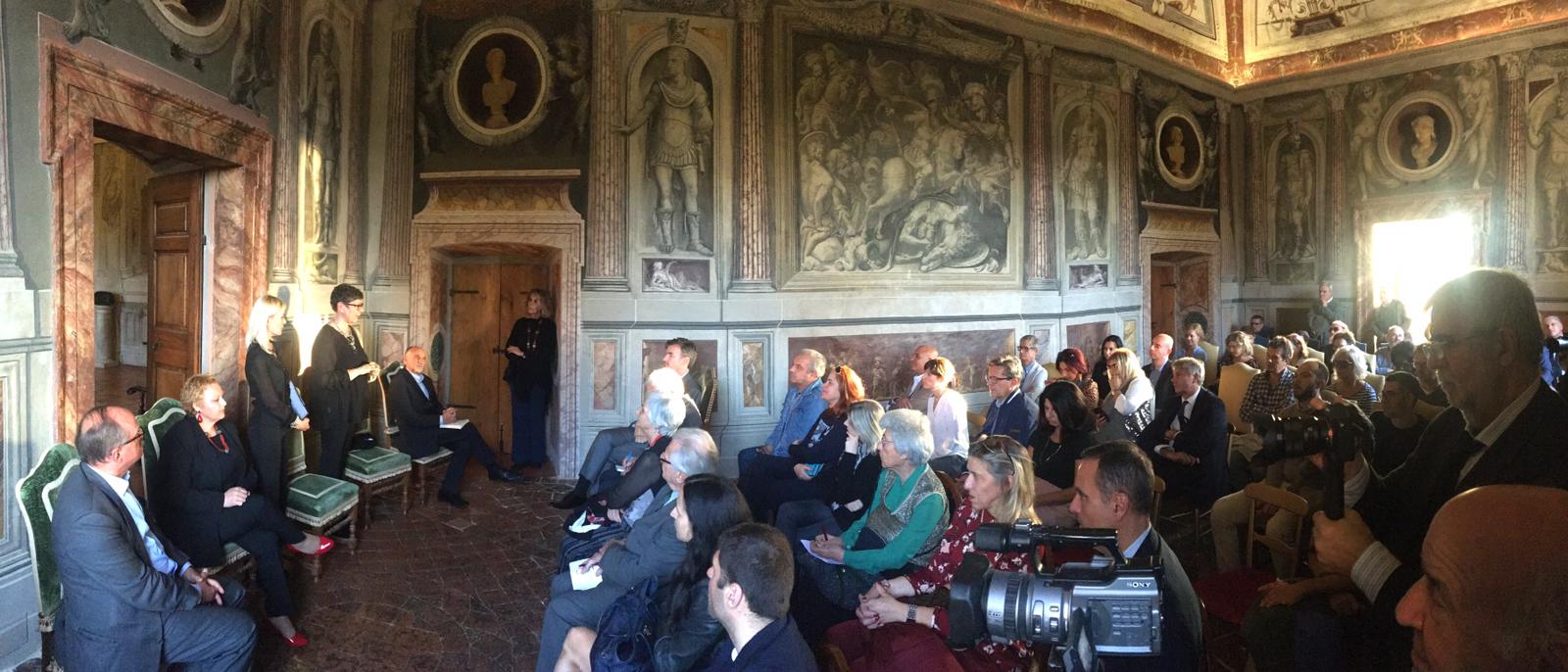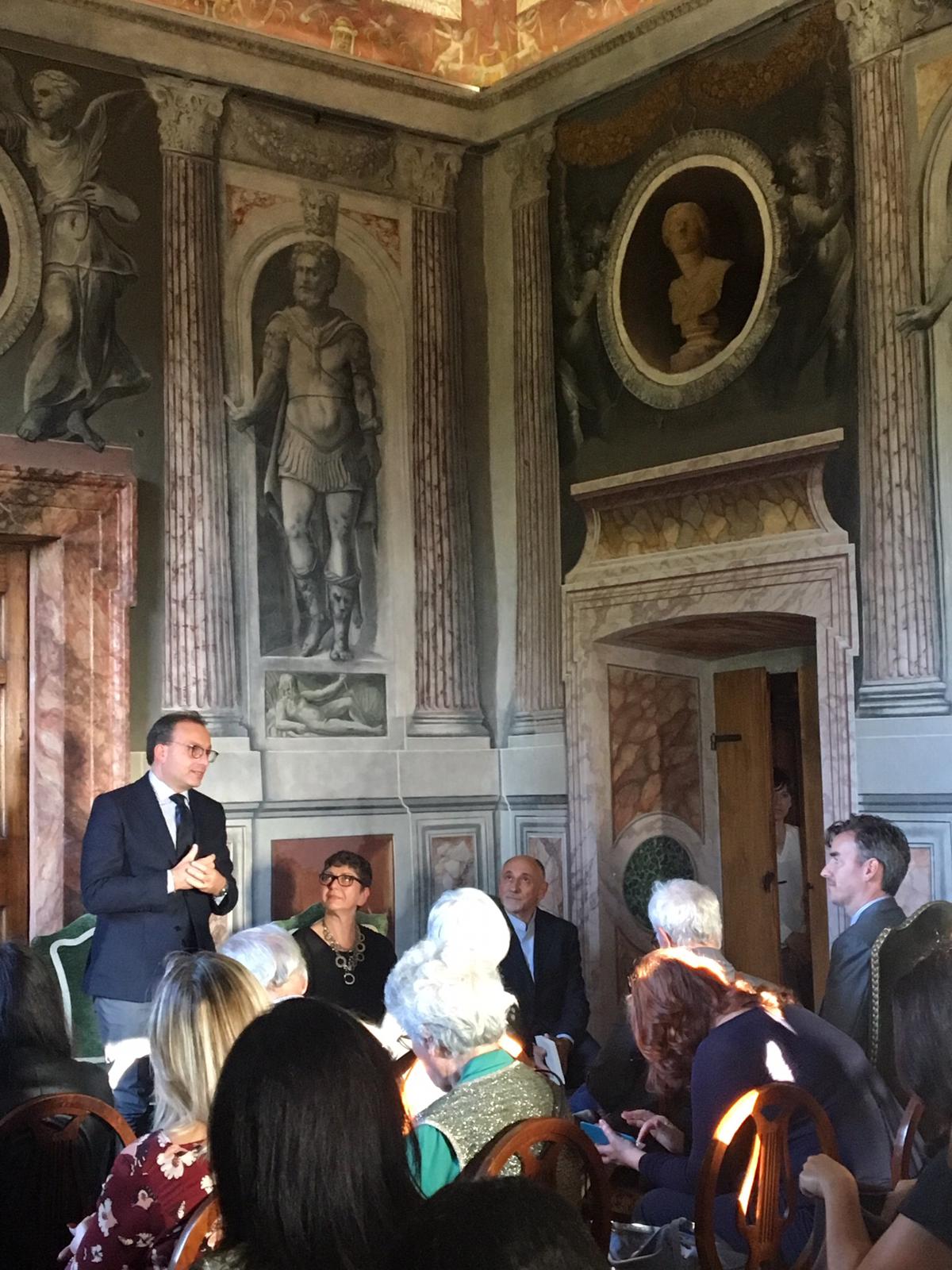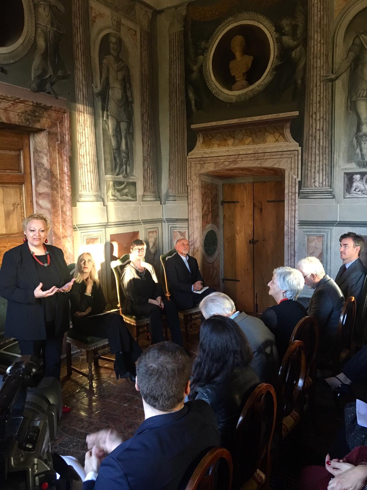 Nella conferenza di presentazione, dopo il saluto ed il ringraziamento per l’ospitalità al Principe Don Ferdinando del Drago, elegantissimo padrone di casa di questa straordinaria dimora, la moderatrice Erika Gottardi ha introdotto le figure dei prestigiosi relatori della conferenza stampa.