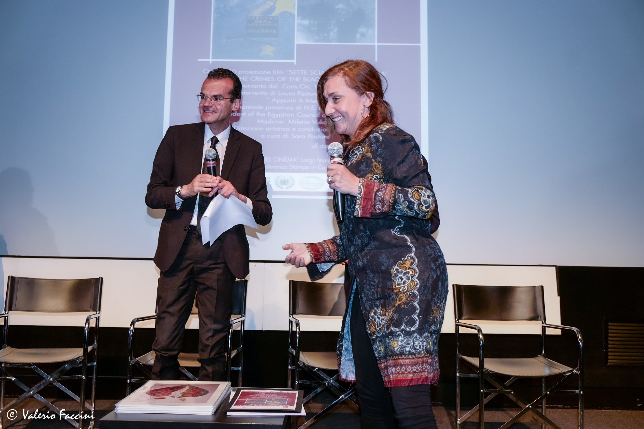 La manifestazione è iniziata alle ore 15,30 con la proiezionein versione completamente restaurata in 4k del film cult degli anni ’70 “Sette scialli di seta gialla”, conosciuto in America con il titolo “The Crimes Of The Black Cat” regia di Sergio Pastore e prodotto da Edmondo Amati, con musiche di Manuel De Sica.