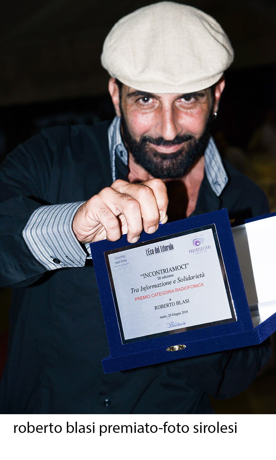 Una seratona che non finiva mai, organizzata alla grande da Lisa Bernardini, Presidente dell’Associazione Culturale Occhio dell’Arte, l’altra sera ad Anzio, nel giardino del ristorante “La Boccuccia” di Mauro Boccuccia. Oltre 180 persone sono arrivate nella graziosa cittadina neroniana per una delle tappe annuali itineranti della kermesse “Photofestival – Attraverso le pieghe del tempo”, 8a edizione, ideata sempre da Lisa Bernardini. Momento clou della serata, il premio giornalistico “Incontriamoci”, 3 edizione, andato a a professionisti dell’Informazione, nelle varie categorie di assegnazione previste.