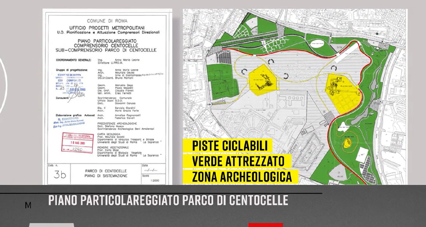 Il lungo viaggio nel degrado romano parte dal Parco archeologico di Centocelle, un tesoro enorme inutilizzato di cui rimane sulla carta solo il progetto approvato dal comune di Roma: un bellissimo disegno in cui la zona archeologica è circondata da verde attrezzato, piste ciclabili e persino una vasca per il canottaggio. Che cosa è rimasto di quel progetto?