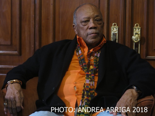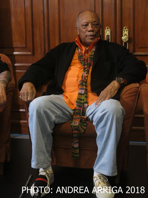 Della collaborazione con Michael Jackson (interrottasi dopo il meno felice esito di ‘Bad’, che vendette ‘solo’ 45 milioni di copie) ricorda: “Ricevetti tante critiche quando produssi ‘Thriller’. Ma io ho sempre pensato che si potesse fare qualunque tipo di musica purché buona. Non ho mai scelto pensando al successo o ai soldi ma alle emozioni. Quincy Jones che ha lavorato, solo per citarne alcuni, con Dizzy Gillespie, Frank Sinatra, Barbra Streisand, Tony Bennett, Henri Salvador, Charles Aznavour, Jacques Brel, Herbie Hancock, e non ha perso la curiosità e la voglia di produrre buona musica (stravede per la 38enne francese Zaz di cui ha prodotto l’album ‘Paris’, “sembra Etta James”), dice di avere un “forte legame con musica italiana grazie a dei cari amici come Armando Trovajoli, Romano Mussolini e Ennio Morricone” e di apprezzare molto anche la nuova generazione di musicista, come Paolo Fresu.