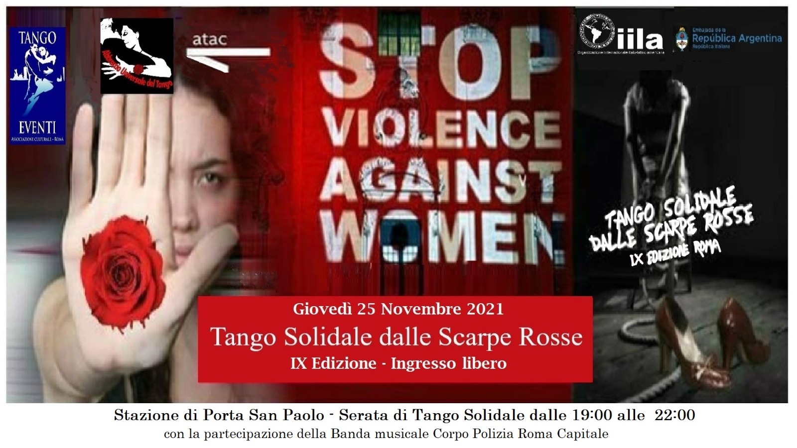 Un tango per combattere la violenza contro le donne. Ritorna anche quest’anno a Roma “ Un tango solidale dalle Scarpe Rosse” , ideato e organizzato da Fatima Scialdone Ass.Cult Tango Eventi con ATAC, e con il Patrocinio della Ambasciata Argentina, I.I.L.A Istituto Italo Latino americano. L’evento, giunto alla IX edizione , si inserisce nell’ambito delle manifestazioni del 25 novembre “ONU – Giornata Internazionale per eliminazione violenza contro donne ” e si terrà giovedì prossimo, 25 novembre 2021, a partire dalle 19.00, presso la Stazione di Porta S. Paolo – Ostia Lido, ( vicino Piramide).