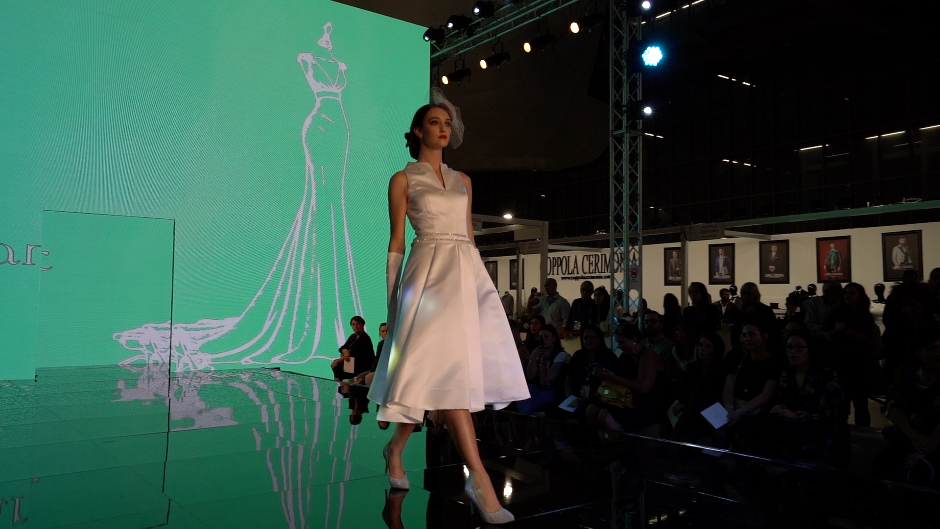 La Vie En Blanc Atelier emoziona la platea di Roma Sposa con una collezione in cui il guanto torna protagonista.