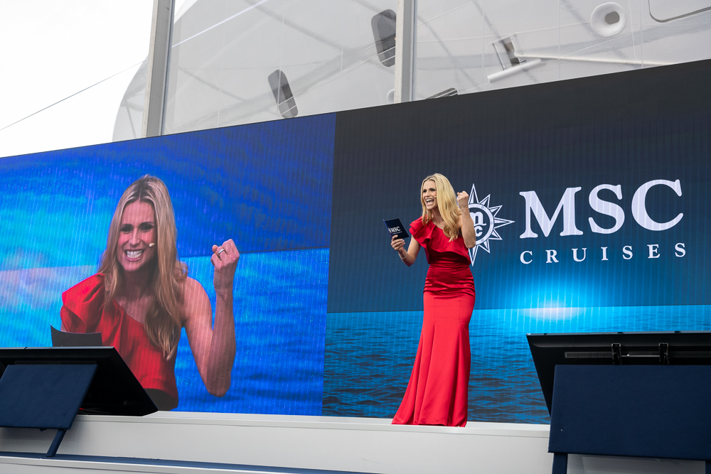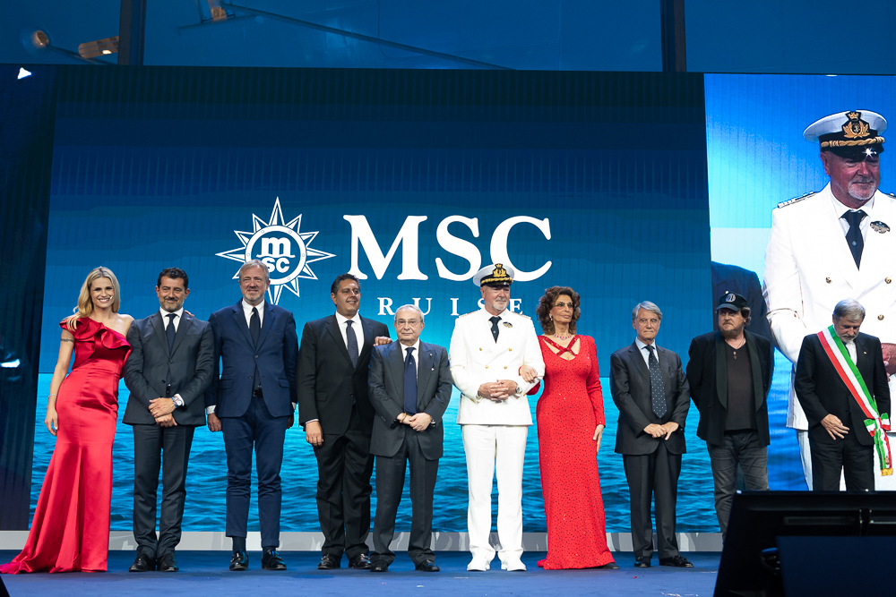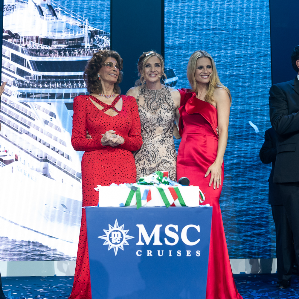 La madrina Sophia Loren, ormai parte della famiglia di MSC Crociere, ha concluso la cerimonia con il momento tradizionale del taglio del nastro che porta la bottiglia di champagne a infrangersi contro lo scafo, battezzando così la 15esima nave della compagnia, come accaduto per tutte le navi precedenti.