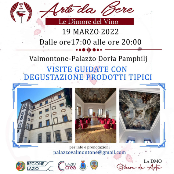 Dopo gli appuntamenti enogastronomici a Palestrina (Zi Rico) e Valmontone (Antica Cantina-Elle Et Lui), e quello culturale a Piglio (Marco Paoli – Casale Verde Luna), torna “Arte da Bere – Le Dimore del Vino” con un viaggio alla scoperta di Palazzo Doria Pamphilj di Valmontone.