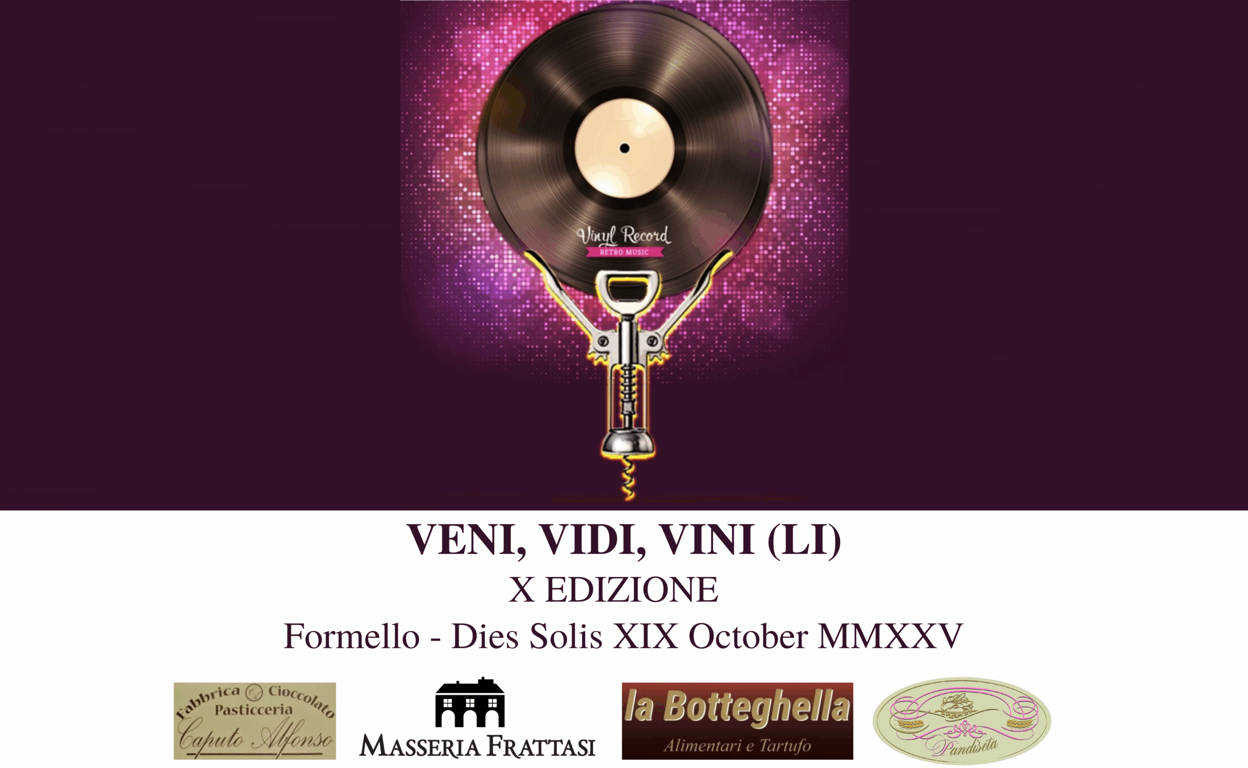 Un evento nato sulla scia della celebre espressione di Gaio Giulio Cesare, “Veni, Vidi, Vici”, qui riadattata per sancire la rinascita del vinile – tornato alla ribalta sia qualitativamente che commercialmente – e per omaggiare il trionfo dell’enogastronomia italiana nel mondo.