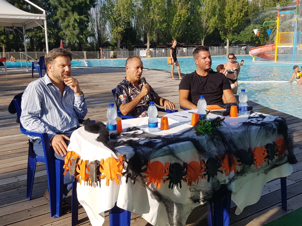Nelle affollatissime piscine si è svolta infatti la selezione di ballerini pronti a lanciarsi in una nuova avventura “Il ballo delle debuttanti più mostruoso dell’anno”, previsto il prossimo 14 ottobre. In giuria i coreografi della Jr School Academy Ballo Danza Fitness di Ardea, Roberto Proietti, Nancy Berti, Gessica De Angelis, lo stiista Luigi Bruno, il marchese Paolo Dragonetti De Torres Rutili.