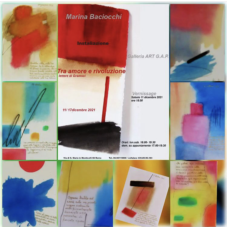 Dall’11 al 17 dicembre ‘21 la galleria Art GAP è lieta di accogliere nel nuovo spazio espositivo, a due passi da Piazza Largo Argentina, la mostra Tra amore e rivoluzione: lettere dal carcere di Antonio Gramsci di Marina Baciocchi, a cura di Federica Fabrizi.
