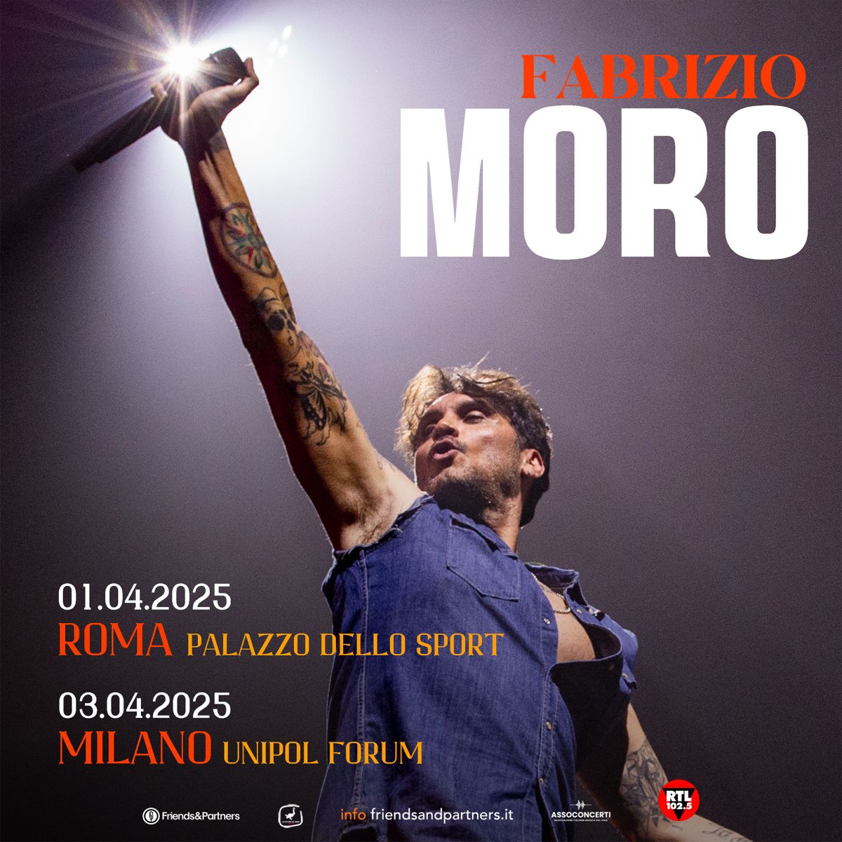 Mancano due mesi ai due speciali eventi con cui FABRIZIO MORO festeggerà i 25 anni di carriera: l’1 aprile al Palazzo dello Sport di ROMA e il 3 aprile all’Unipol Forum di MILANO.