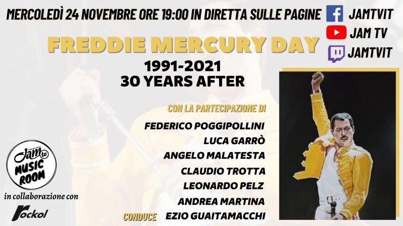 Oggi 24 novembre 2021, just for one day…, JAM TV (la web tv musicale fondata e diretta da Ezio Guaitamacchi) dedica una programmazione speciale al grande frontman dei QUEEN con interviste esclusive, servizi ad hoc, rubriche di approfondimento e una puntata speciale della “MUSIC ROOM” (dirette Facebook, YouTube e Twitch) in collaborazione con Rockol incentrata sull’arte di FREDDIE MERCURY.