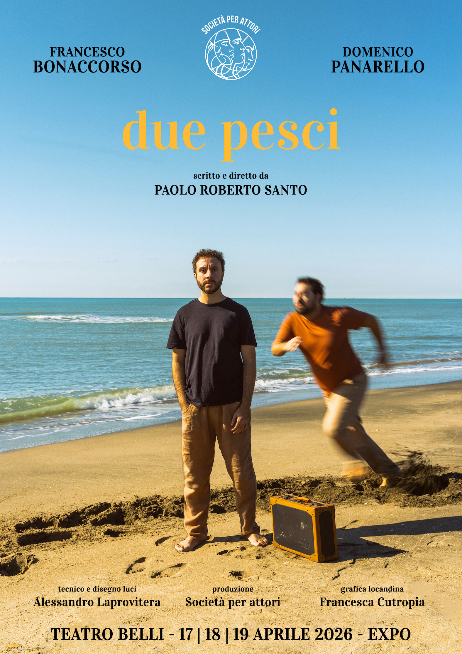 Debutta in prima assoluta a Roma, dal 17 al 19 aprile, al Teatro Belli, lo spettacolo “Due Pesci”, scritto e diretto da Paolo Roberto Santo, nell’ambito della Rassegna Expo.
