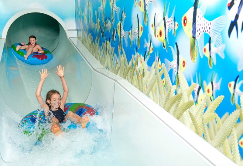 Family spa con acquapark: con 4 diverse piscine, scivoli e giochi d’acqua.