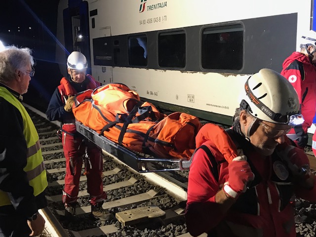 Simulata l’evacuazione dei viaggiatori di un treno regionale che si arresta a causa di un dissesto idrogeologico