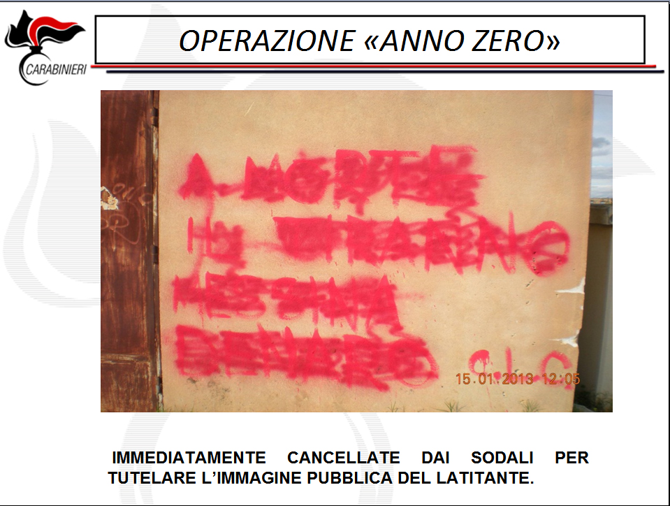 Le indagini, oltre ad accertare il capillare controllo del territorio esercitato da COSA NOSTRA ed il sistematico ricoso all’intimidazione per infiltrare il tessuto economico locale, hanno consentito di individuare la rete relazionale funzionale allo smistamento dei “PIZZINI” con i quali il latitante impartiva le disposizioni ai suoi sodali.