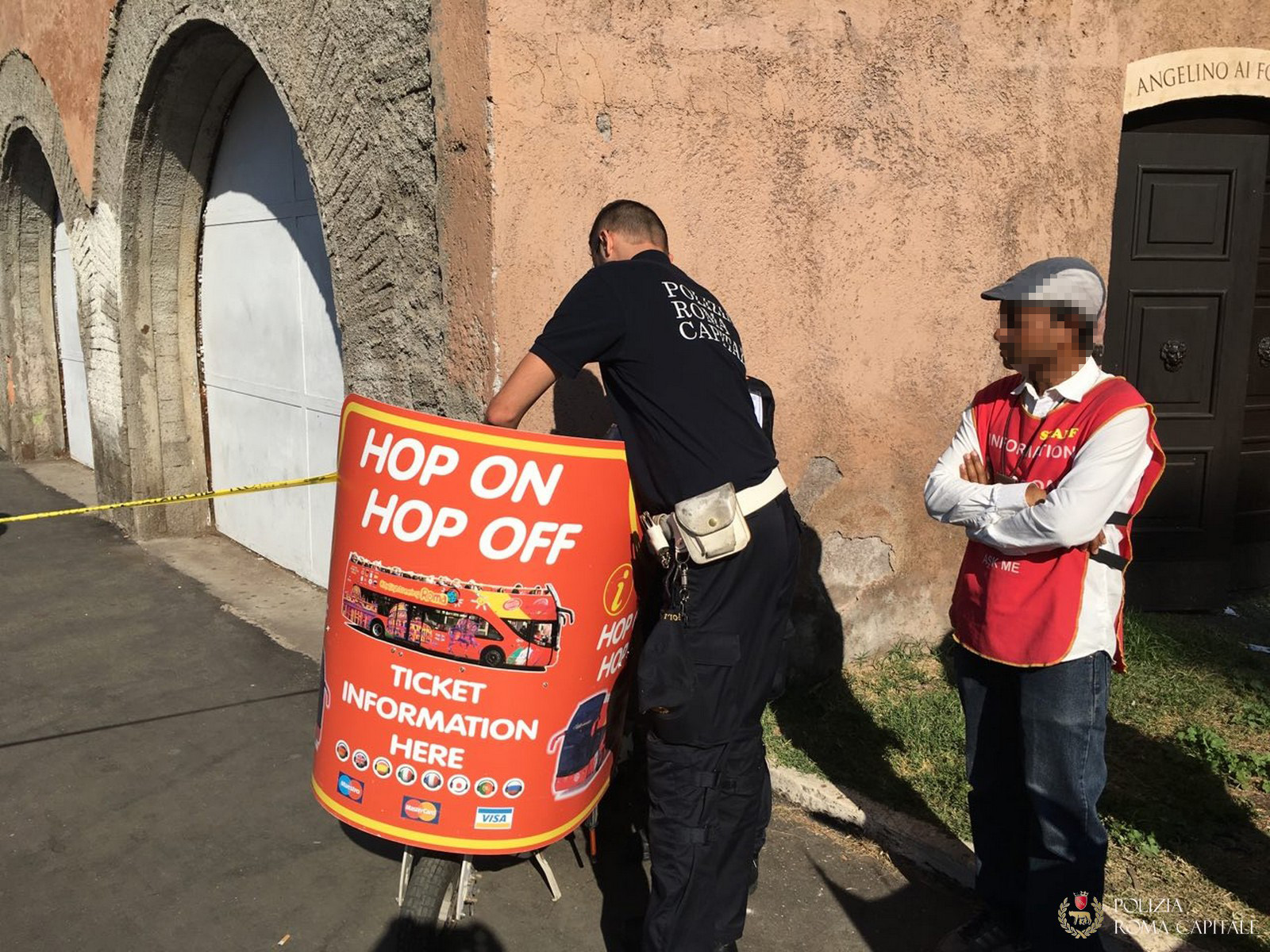 Ai trasgressori è stata comminata una sanzione pari a 412 euro per pubblicità abusiva e 50 euro per la vendita illecita di biglietti. Fermate per identificazione 26 persone: 19 cittadini di nazionalità bengalese, 3 pachistana, 1 nigeriana, 2 indiana e 1 ganese, alcuni sono stati trovati privi di regolare contratto di lavoro, per i quali sono in corso ulteriori accertamenti.