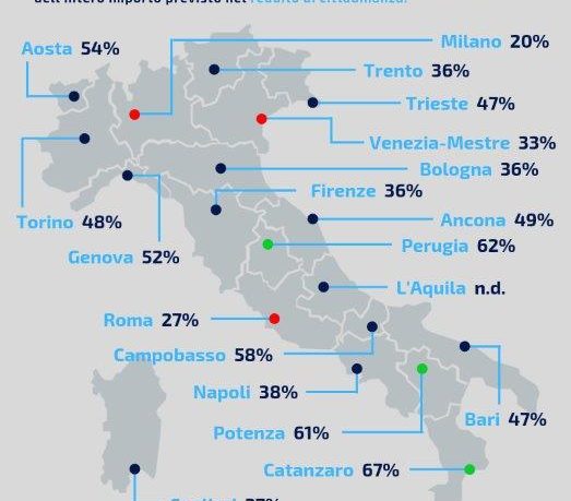 Con i 280 euro del reddito di cittadinanza destinati agli affitti, gli inquilini di Trieste e Bari potranno pagare poco meno della metà (47%) dei 596 euro richiesti per un mese di pigione, mentre per i torinesi la percentuale sale al 48%. Gli anconetani coprirebbero quasi la metà (49%) del canone medio d’affitto (571 euro), ma il vantaggio sarebbe più consistente a Palermo (51%) e Genova (52%), dove agli inquilini la locazione costa ogni mese 549 e 538 euro.