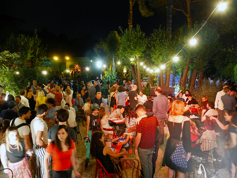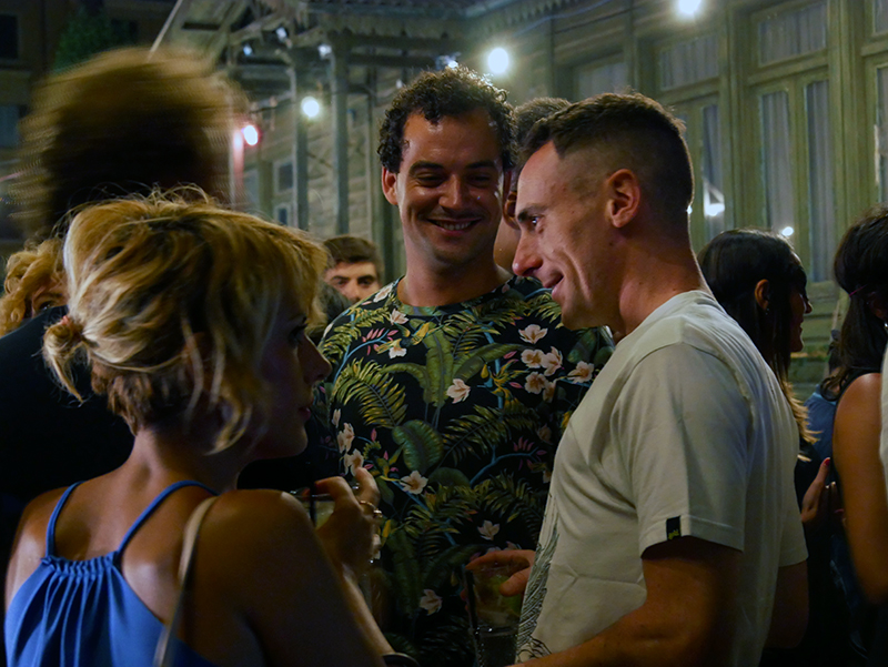 Arrivano Domiziana Giordano, Cinzia Scaglione che parla con Salvatore Marino, già all’opera per la seconda edizione del suo Vertical Movie Festival e poi ancora Marius Bizau, il drammaturgo Giovanni Franci seguito dal suo pupillo Fabio Vasco insieme alla sua Valeria Nardella. In tarda serata giungono anche Marianna Di Martino che scherza con l’amico nuotatore olimpionico Alex Di Giorgio e poi seguita dal suo inseparabile cucciolo Ninnì arriva Liliana Fiorelli, che abbraccia l’amica Simona Borioni fasciata da un sensuale abito scuro.