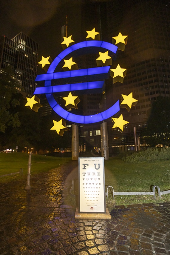 FRANKFURT, BCE: La Street Artist Laika all’Euro Sculpture di Francoforte: “Futuro. Voi riuscite a vederlo?”