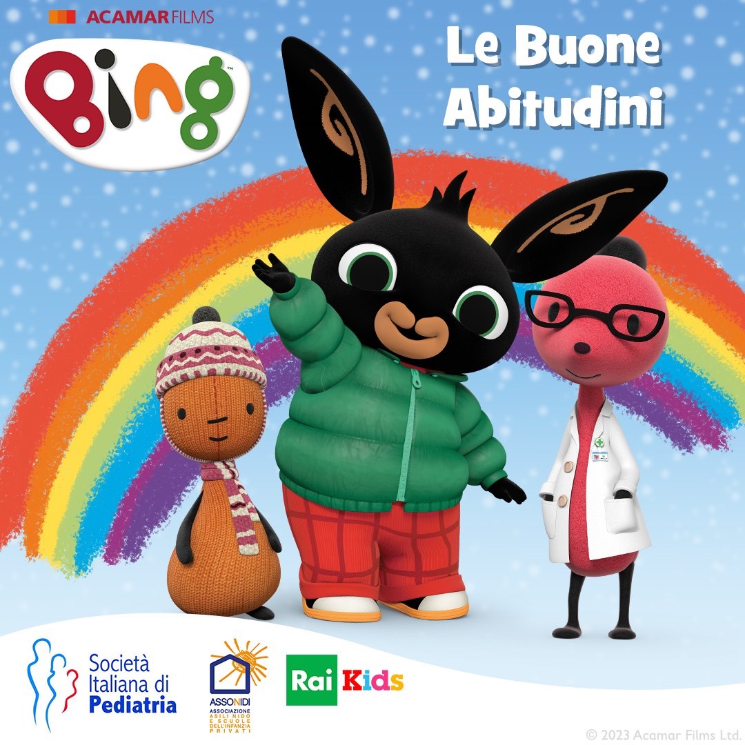 Oltre 11 mila pediatri su tutto il territorio nazionale, circa 400 strutture tra Asili Nido e Scuole dell’Infanzia, centinaia di migliaia di famiglie con bambini in età 0-6 anni che seguono Bing su Rai Yoyo e su tutte le principali piattaforme di distribuzione di contenuti multimediali, vengono coinvolti in un grande progetto di sensibilizzazione su argomenti quali la nutrizione, l’importanza del gioco all’aria aperta, le principali regole di igiene e cura del bambino, la paura dei dottori e degli ospedali, e ora, in vista del Natale, l’importanza della buona nanna, grazie alla campagna #bedtimeroutine.