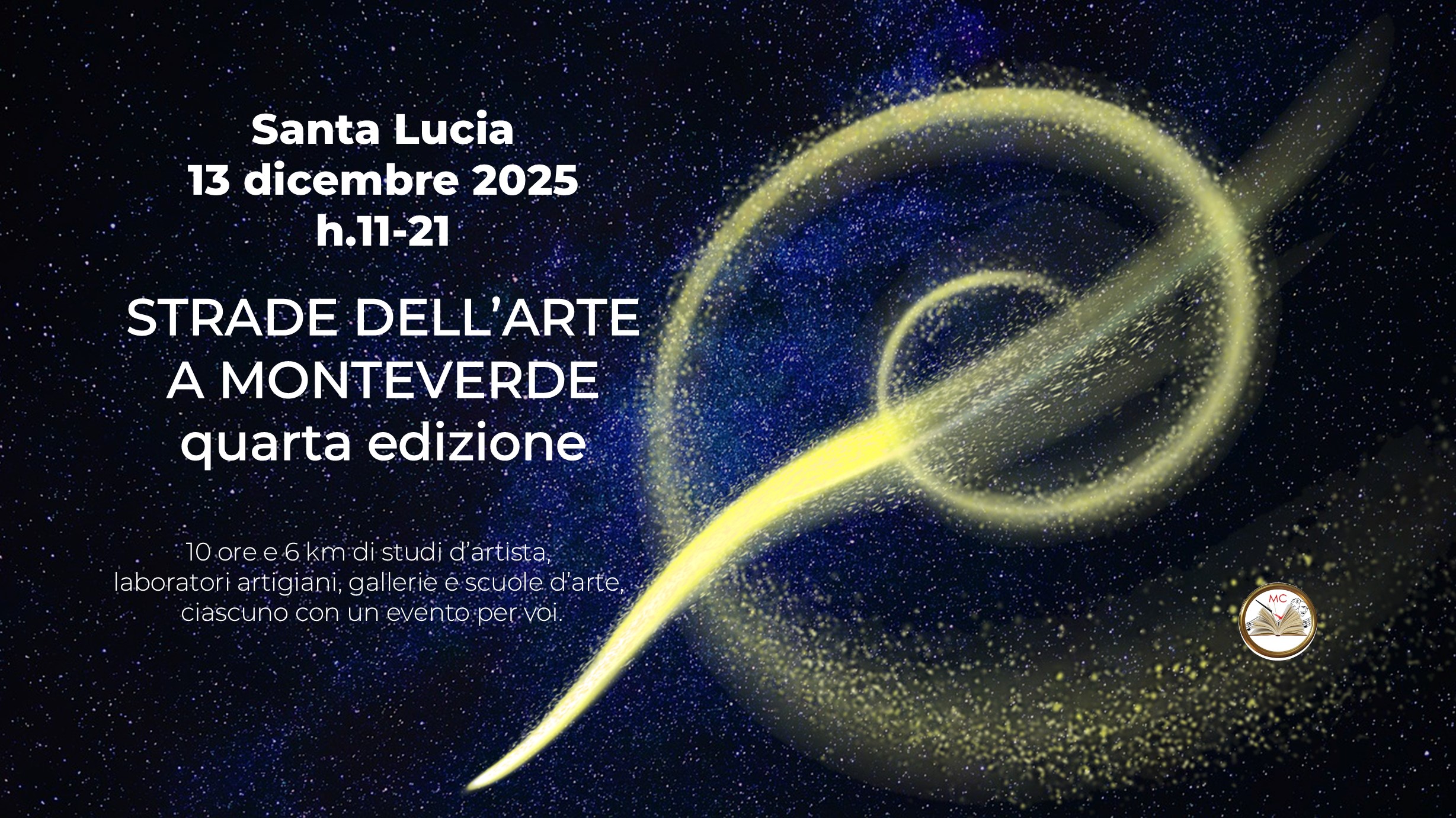 Il 13 dicembre 2025, dalle 11 alle 21, Monteverde torna a illuminarsi per Santa Lucia con la quarta edizione delle Strade dell’Arte, un evento che ogni anno trasforma il quartiere in un percorso diffuso di creatività, incontri e bellezza.