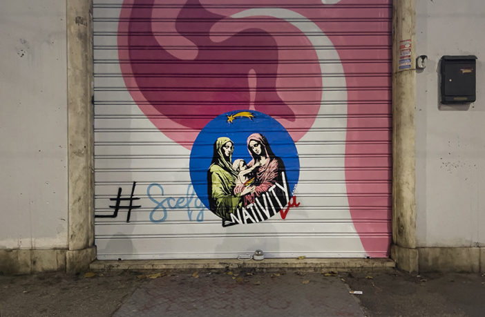 La mattina del 24 dicembre è apparsa la nuova opera-provocazione della street artist Laika presso la sede di PRO-VITA e FAMIGLIA, in viale Manzoni a Roma.