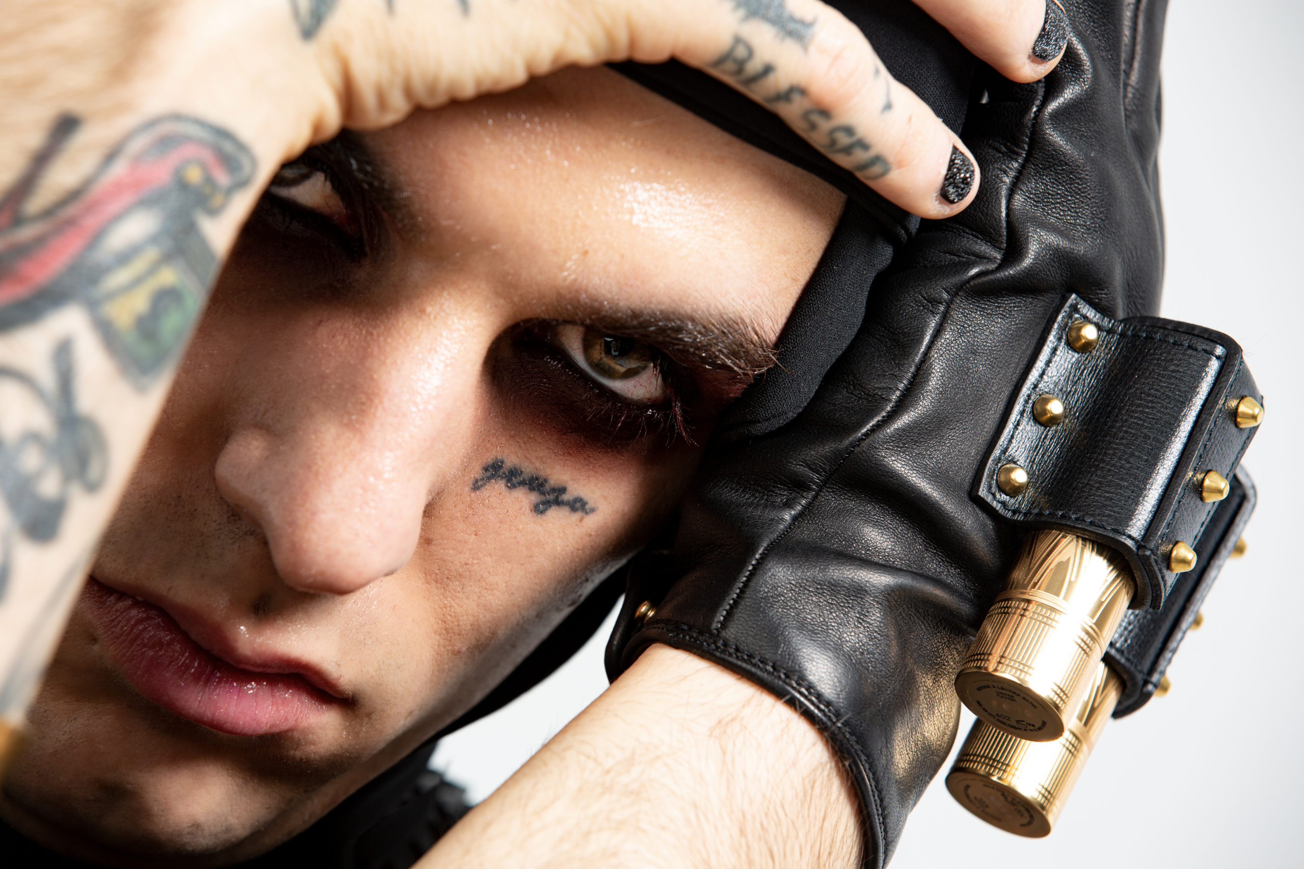 A sorpresa, Lauro ha estratto da uno speciale guanto un rossetto Gucci con cui si è truccato le labbra.
