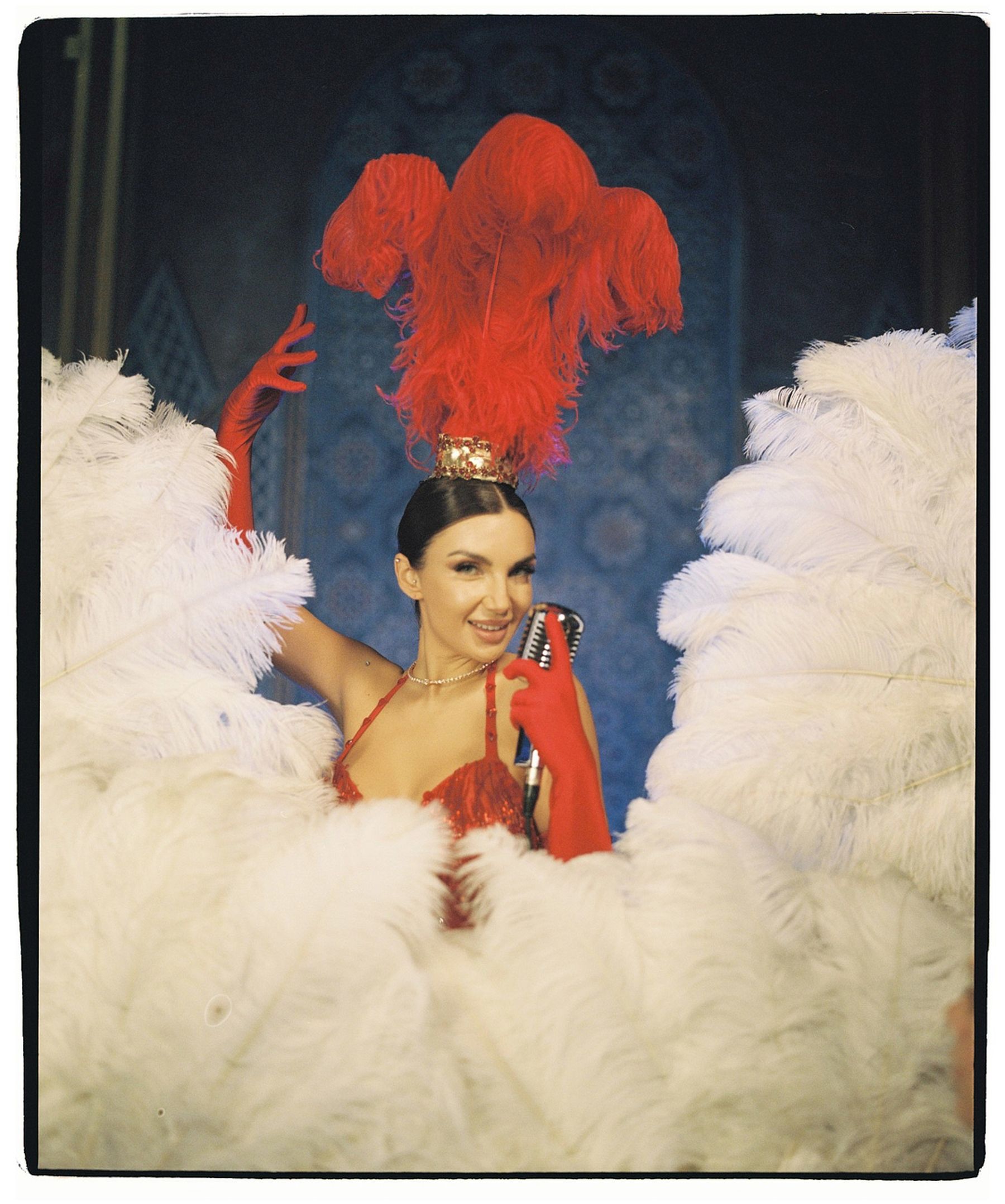 Tra piume, pailettes e strass, l’artista sfoggia un look da vera showgirl con copricapo di piume e outfit ad alto impatto visivo, in linea con la giocosità e la sensualità del brano. Un’esplosione visiva che accompagna un singolo pensato per far ballare.