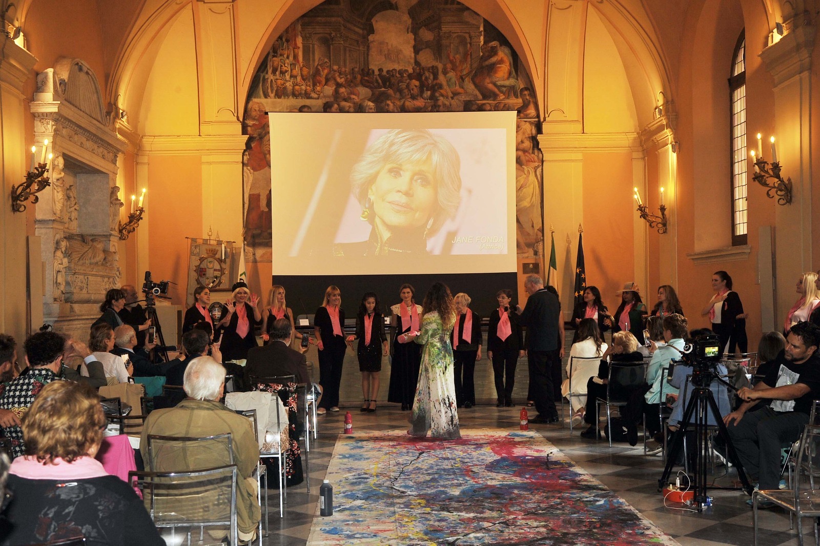 In chiusura, sulle note del M° Fabio Lombardi, l’Attrice Patrizia Bellucci, ha recitato alcuni versi dedicati al seno tratti da “Il Libro del Seno – Bellezza, Sogno e Vita” della Dott.ssa Santa Impellizzieri, mentre in contemporanea la Performer Francesca Chialà continuava a dipingere la sua tela di rosa, verde e fucsia.