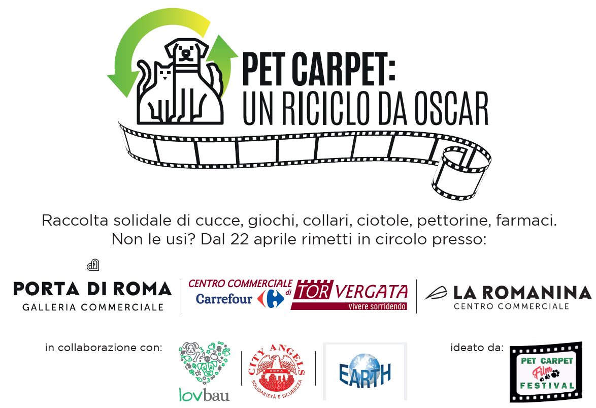 Pet Carpet: un riciclo da Oscar”, il progetto di raccolta solidale di cucce, giochi, farmaci e ciotole non utilizzati, pronti per essere rimessi in circolo, prosegue con grande successo per tutto il mese di maggio in collaborazione con alcuni centri commerciali di Roma (Porta di Roma, La Romanina, Tor Vergata)presso i quali è possibile lasciare gli accessori pet.