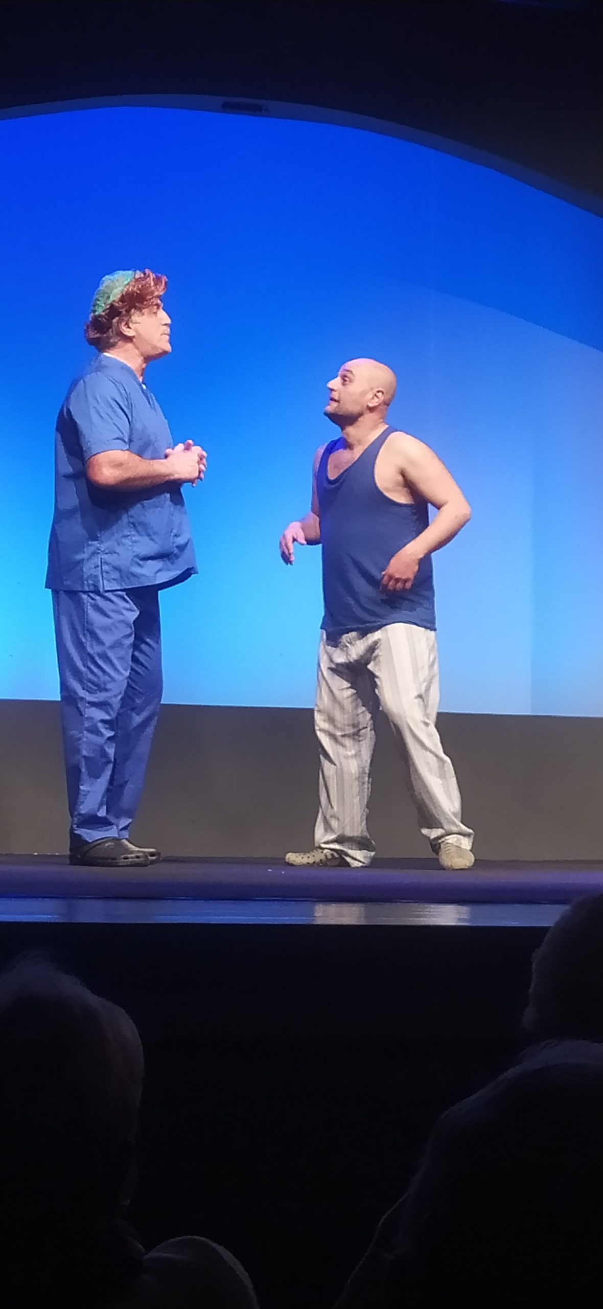 Il primo atto è una risata continua. Battute, gag, situazioni esilaranti sottolineate con espressioni e movenze che questi ottimi attori usano efficacemente grazie alla grande esperienza che hanno maturato nella loro impegnata vita artistica. Cavallaro e Goitre insieme sono qualcosa di fantastico, dei cicloni della comicità. Si alternano e si spalleggiano di continuo riportandomi alla mente quei personaggi di cui i film con Fabrizi, Sordi e Montesano erano pieni; le loro idee divertenti, le personalità e gli atteggiamenti schietti, naturali e caricaturali fanno il resto.