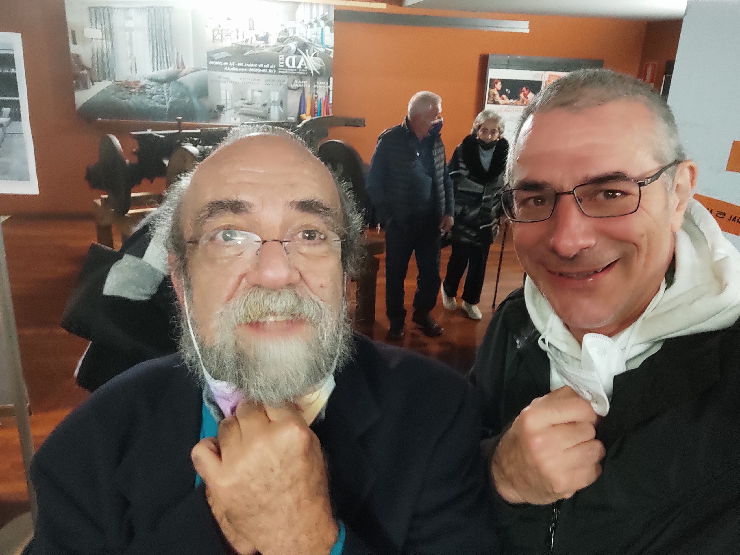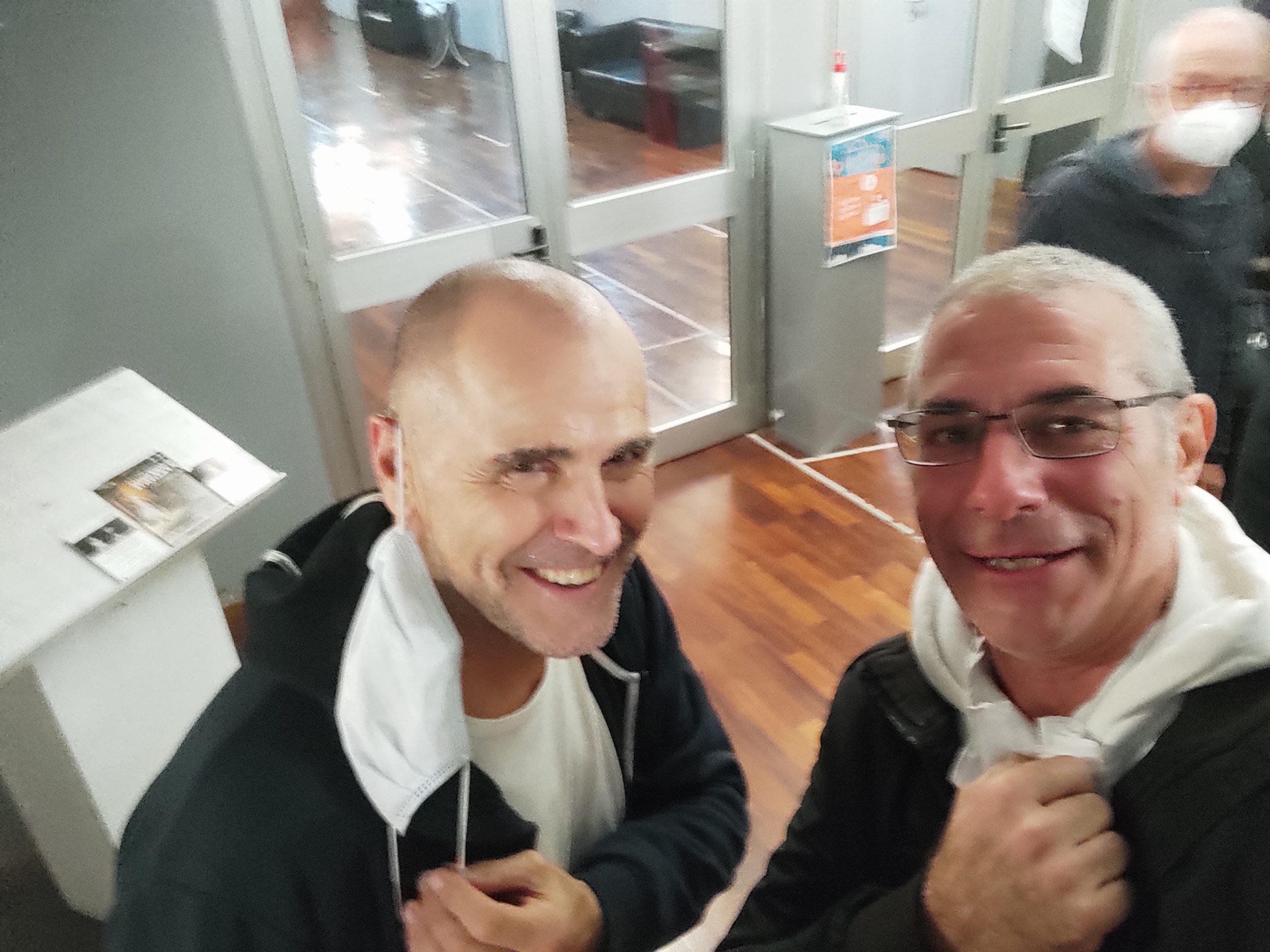 Immancabile l’incontro post spettacolo con il loro pubblico. Tra chi aspettava, l’anziana mamma di Giobbe che ha voluto veder recitare suo figlio, un dolcissimo quadretto che ho avuto modo di apprezzare. In seguito, dopo il saluto materno, Giobbe si è reso disponibile per farsi salutare e conoscere di persona. Stessa cosa per Pino, che avevo già conosciuto poco tempo fa ad un altro suo spettacolo, “Il prestito”. Sempre sorridente ed accogliente sia nei miei confronti che con gli altri spettatori rimasti per salutarlo. Apprezzo sempre questo momento finale della serata che reputo una sorta di “terzo tempo”. Un piacevole incontro tra artisti e gente comune, che consolida il rapporto tra le due parti.