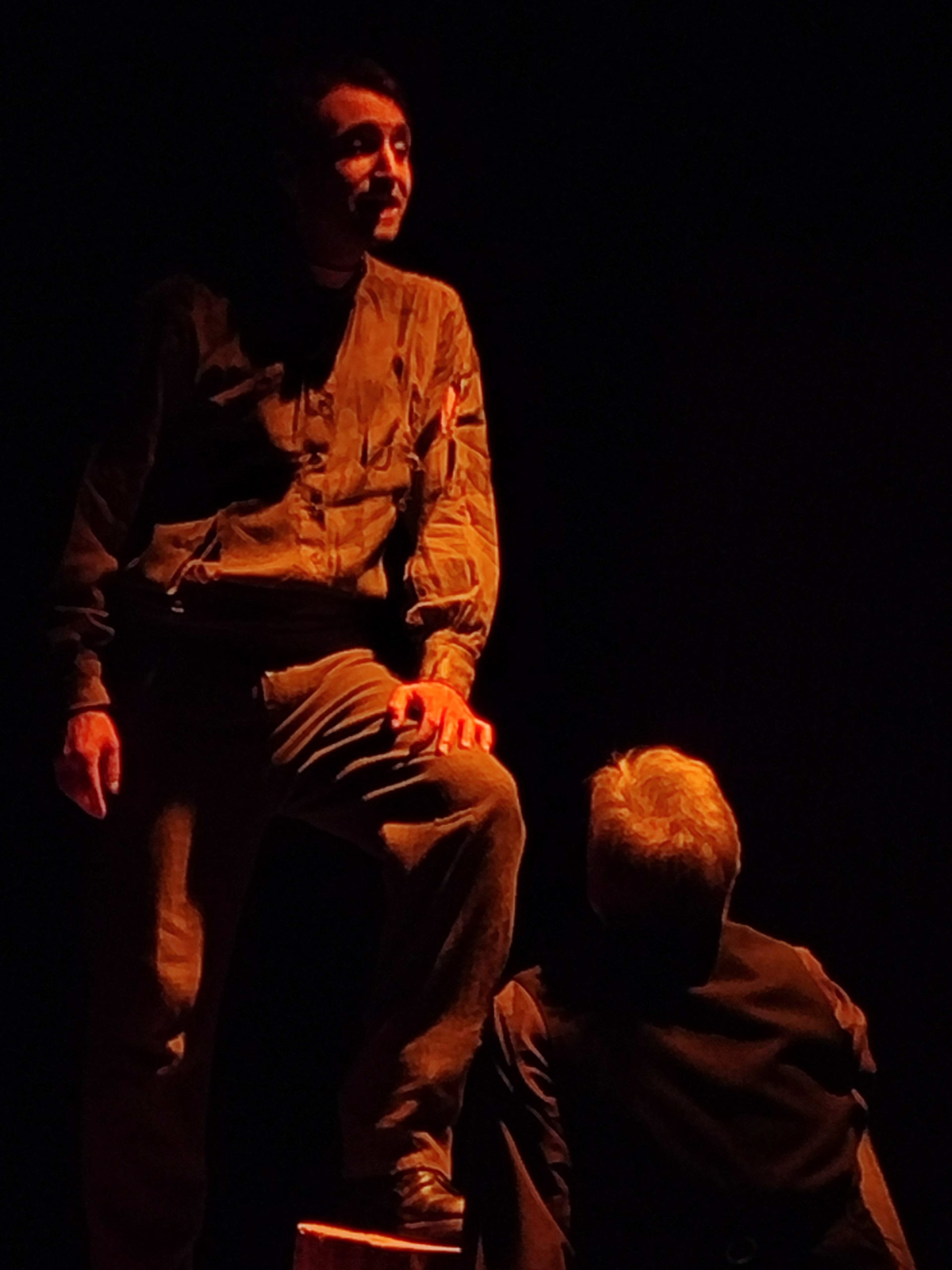 Padroni della scena con una recitazione sopra le righe, sono dei veri maestri sopraffini di espressività e gestualità, capaci di rendere vivo e singolare ogni soggetto. Si muovono in una particolare scenografia inghiottita dal buio, che grazie a silenziosi movimenti compiuti direttamente dagli attori sulla scena, finisce per trasformare un carro da trasporto in un interno di una casa modesta.