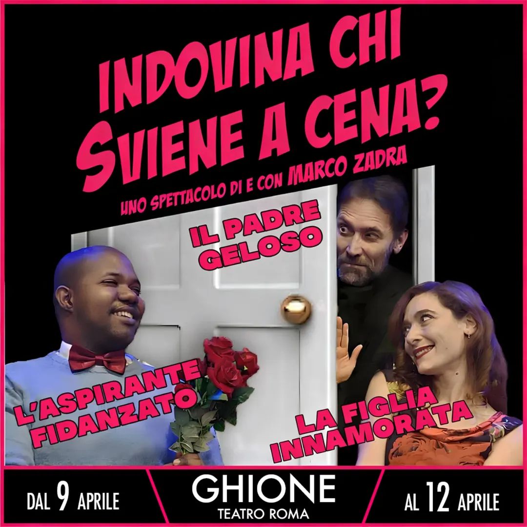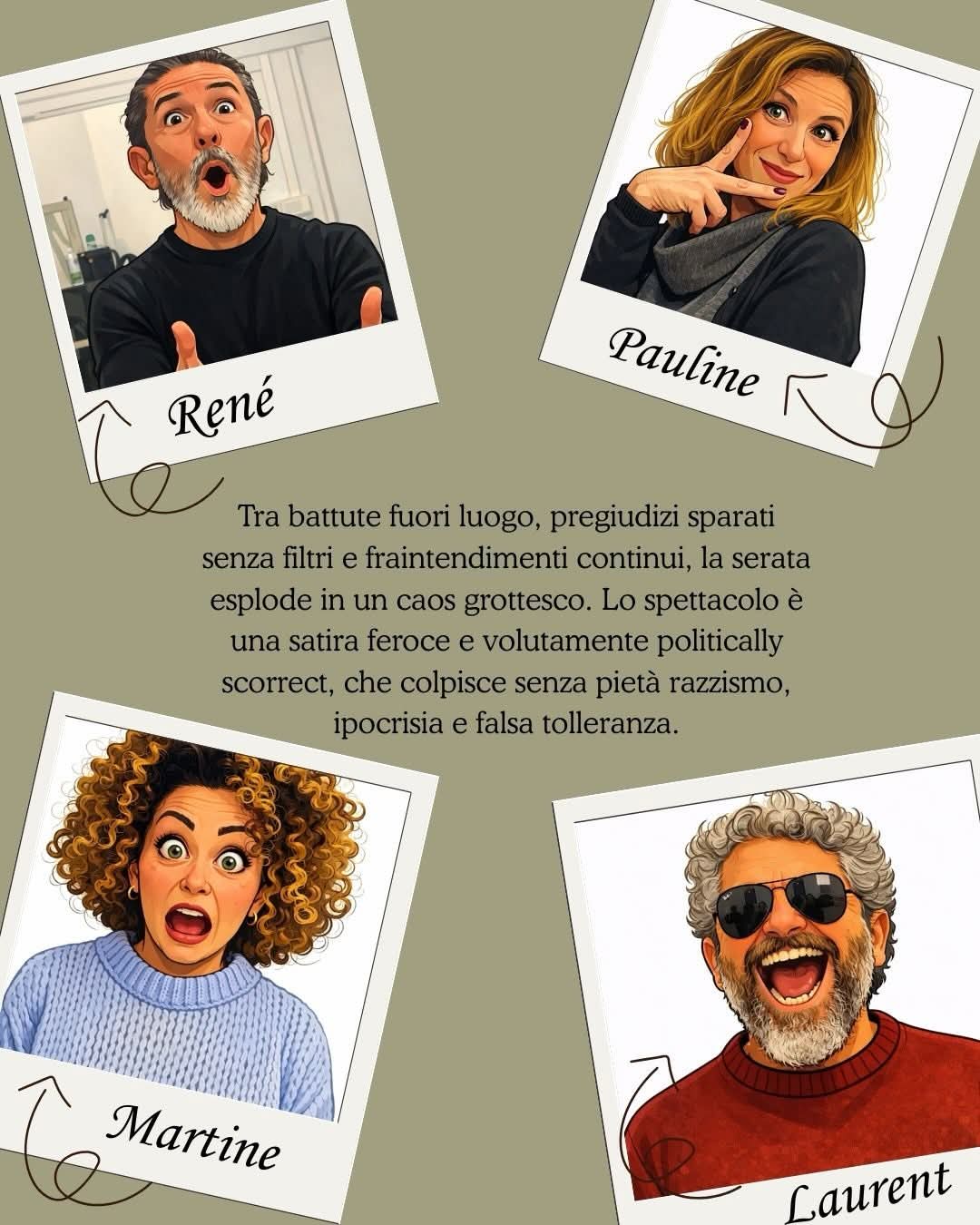 Stasera viene scomodata addirittura la famosa pellicola del 1967 con Sydney Poiter, Spencer Trecy e Katharine Hepburn “Indovina chi viene a cena”. È rivisitata, con personaggi completamente rinnovati o inventati, immersi nella loro imbarazzante mediocrità ma sempre dai forti connotati comici. Un richiamo velato all’ipocrisia che ci circonda rispetto ai temi trattati dalla commedia, che vengono comicamente esasperati infrangendo le barriere del political correct. Sono temi che ci coinvolgono ma che non menzionerò per lasciarvi la sorpresa.
