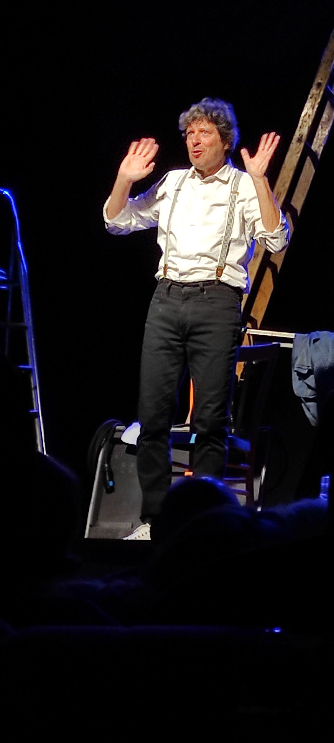 Lo spettacolo termina, ma ora il nostro attore, vestendo i suoi di panni, ci intrattiene ancora per ringraziarci e per prendersi il suo meritato applauso finale che ha davvero meritato. Mi piace il suo modo di fare comicità, ispirato a quella italiana di decenni fa che troviamo ormai solo nei vecchi film, ma che lui sa riportare in auge modernizzandola. Grazie anche ai testi di Alessandro Prugnola, Salvatore Ferraro, Adriano Bennicelli e Roberto Ciufoli.