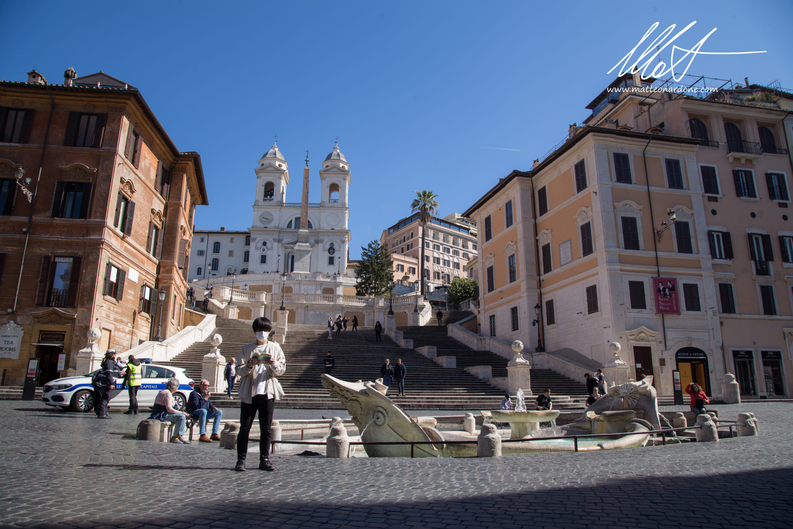 Girando nel cuore di Roma tra le sue arterie svuotate della vita romana immortalando il livor mortis dell’Urbe dopo l’emorragia di turisti e di romani.