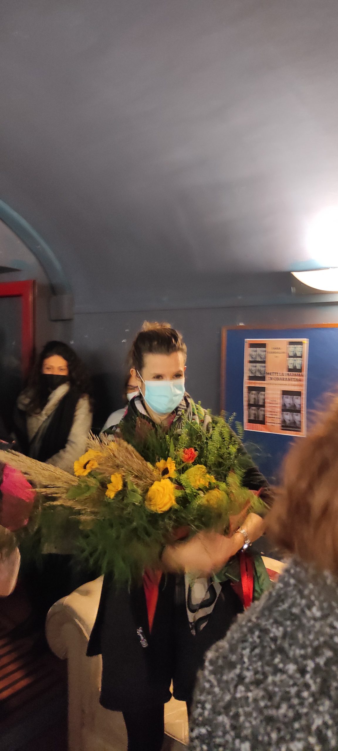 Simpatica, divertente, ma anche profonda quando tocca alcuni argomenti come l’assurda situazione dei maturandi del 2020, che hanno sostenuto il loro esame in maniera quasi fantascientifica e che dopo non hanno potuto neanche godere della meritata vacanza estiva; dell’incontro con i loro coetanei, di tutte quelle cose che fino all’inizio della pandemia sembravano, anzi, erano normali, scontate. Un periodo che abbiamo perso noi, come questi adolescenti e che nessuno potrà mai restituire. Insomma, allegria e riflessione su un tema che ha coinvolto tutti. Spettacolo divertente e che è piaciuto al pubblico, che inevitabilmente si è poi intrattenuto con questa deliziosa, simpatica e cordiale artista.