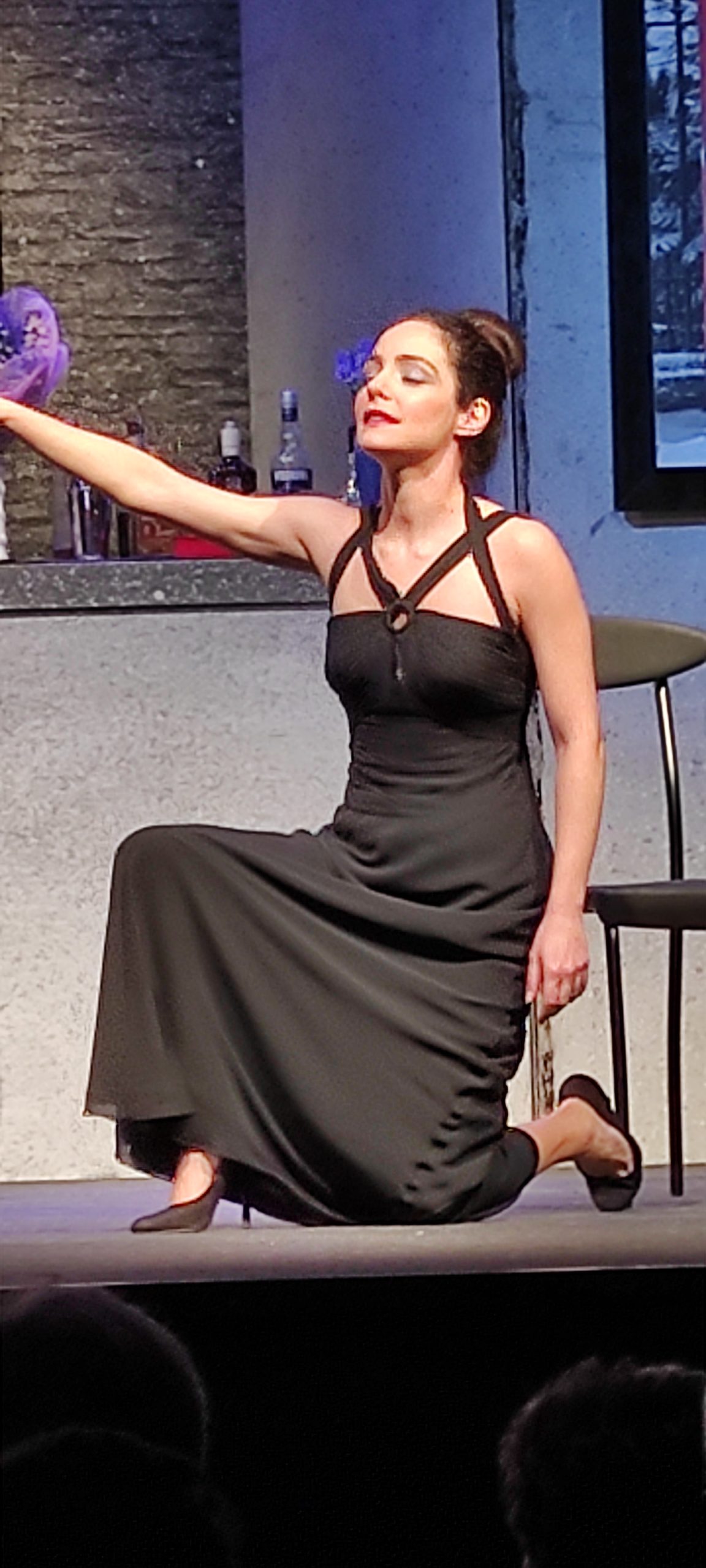L’attrice sfoggia sul palco numerosi vestiti che Lucia Mirabile sceglie per lei esaltandone la figura, molto femminile e delicata, quando si muove con gli altri nella bella scenografia che ricrea un elegante appartamento. Le diverse scene sono separate da stacchi musicali e da un buon uso delle luci, tutto arricchito dai frequenti applausi della platea.