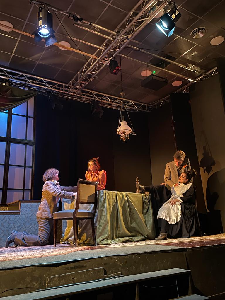 Altri due insulsi e fastidiosi personaggi sono Pekar’skij e Kukiskin, Pietro e Matteo. Il primo al pari di Orlov, eccentrico ed egoista privo di scrupoli e vuoto, il secondo un arrampicatore sociale ruffiano e codardo. Pietro, con quella sua spiccata attitudine nel presentarsi simpaticamente antipatico, è ben riconoscibile nel suo modo di interpretare davvero realistico; non di meno Matteo, che oltre ad essere credibile nella sua parte, colpisce per il suo aspetto in tema con il personaggio che presenta. Loro completano questo circolo dei potenti entrando in scena tra schiamazzi, divertimenti e smodata superficialità, arricchendo quest’ accolita di inutili parassiti. Ben si muove la governante, una bravissima Silvia Maria che gioca sapientemente con il suo personaggio, manifestando con realismo la grazia, la sensualità, la civetteria, ma anche la sua brama di potere e il suo arrivismo, per poi scaricare le sue frustrazioni sui più deboli, insieme alla sua invidia. Riesce a rendersi piacente e provocante sfruttando la sua femminilità egocentrica per ottenere l’interesse di questo gruppo di debosciati. Ultima, ma non ultima, l’amante francofona di Orlov, Zinaida, una sensuale a tratti infantile, infatuata, sognante e piagnucolosa donna. Elena ben rende l’idea di questo personaggio in bilico. Vestendo efficacemente i suoi panni si trasforma in un inconsapevole vittima sacrificale che gioca la sua mano, perdendo tutto. Anche lei è schiava del potere che crede di avere in pugno, s’innamora di questo essere privo di sentimenti abbandonando il marito per ritrovarsi a vivere poi come un cane da compagnia scomodo e fastidioso, sia per Orlov che per la governante acida ed infastidita dalla bella presenza di quest’ antagonista.