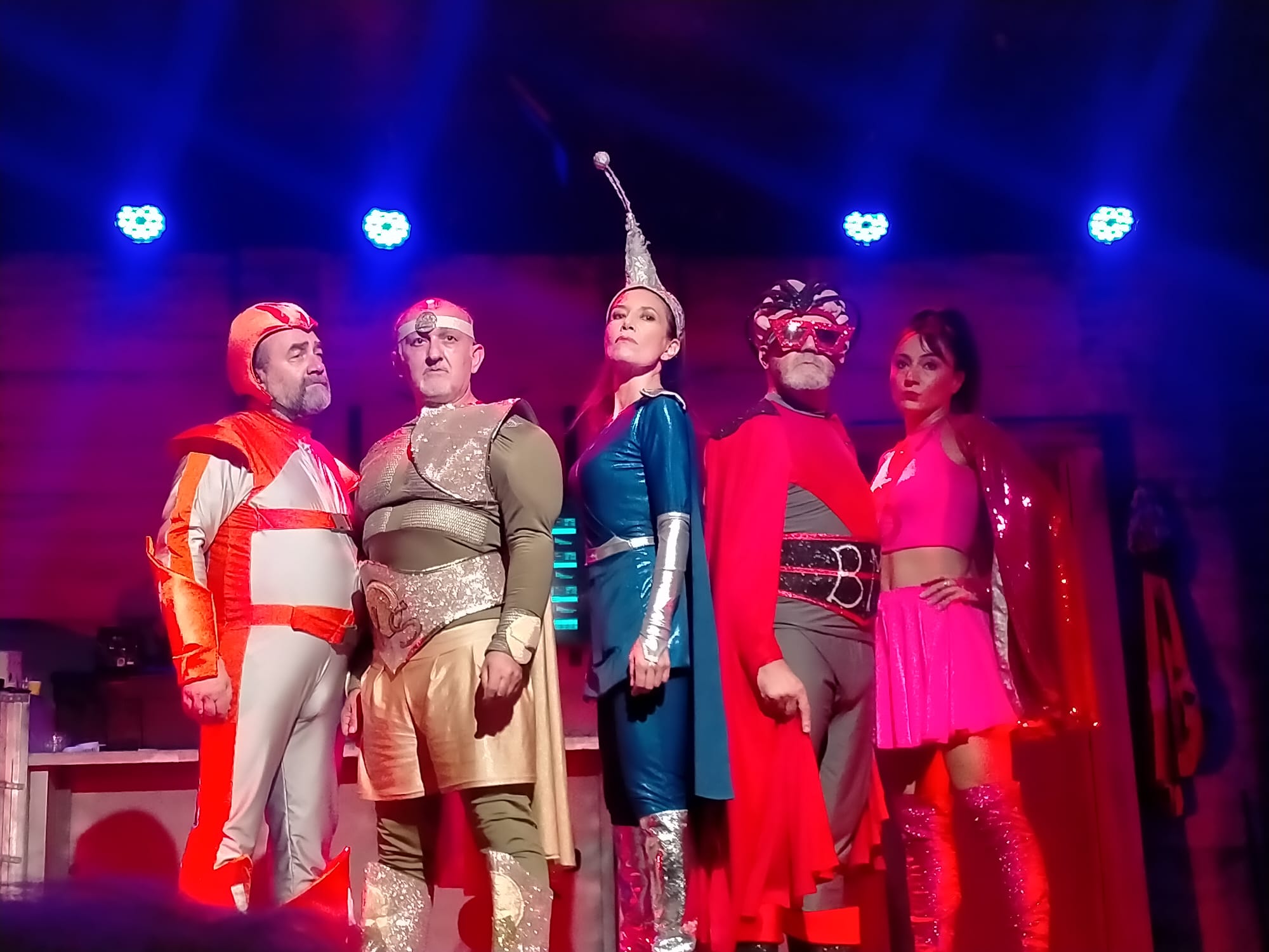 Troverete un’interessante scenografia che ripropone il loro covo-abitazione futuristico e sgangherato, rivelando una particolare attenzione ai dettagli e sfruttando anche la tecnologia, qualcosa di inconsueto per il teatro. Luci, effetti scenici e musiche tratte da film su questo genere completano il resto.