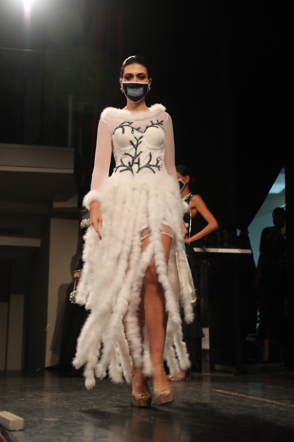 In passerella abbiamo potuto ammirare l’Haute Couture, quella autentica made in Italy, con ricami e applicazioni pregiate cucite a mano dalla stessa couturier, con minuzia e passione, che solo chi ama veramente questo lavoro riesce a fare.